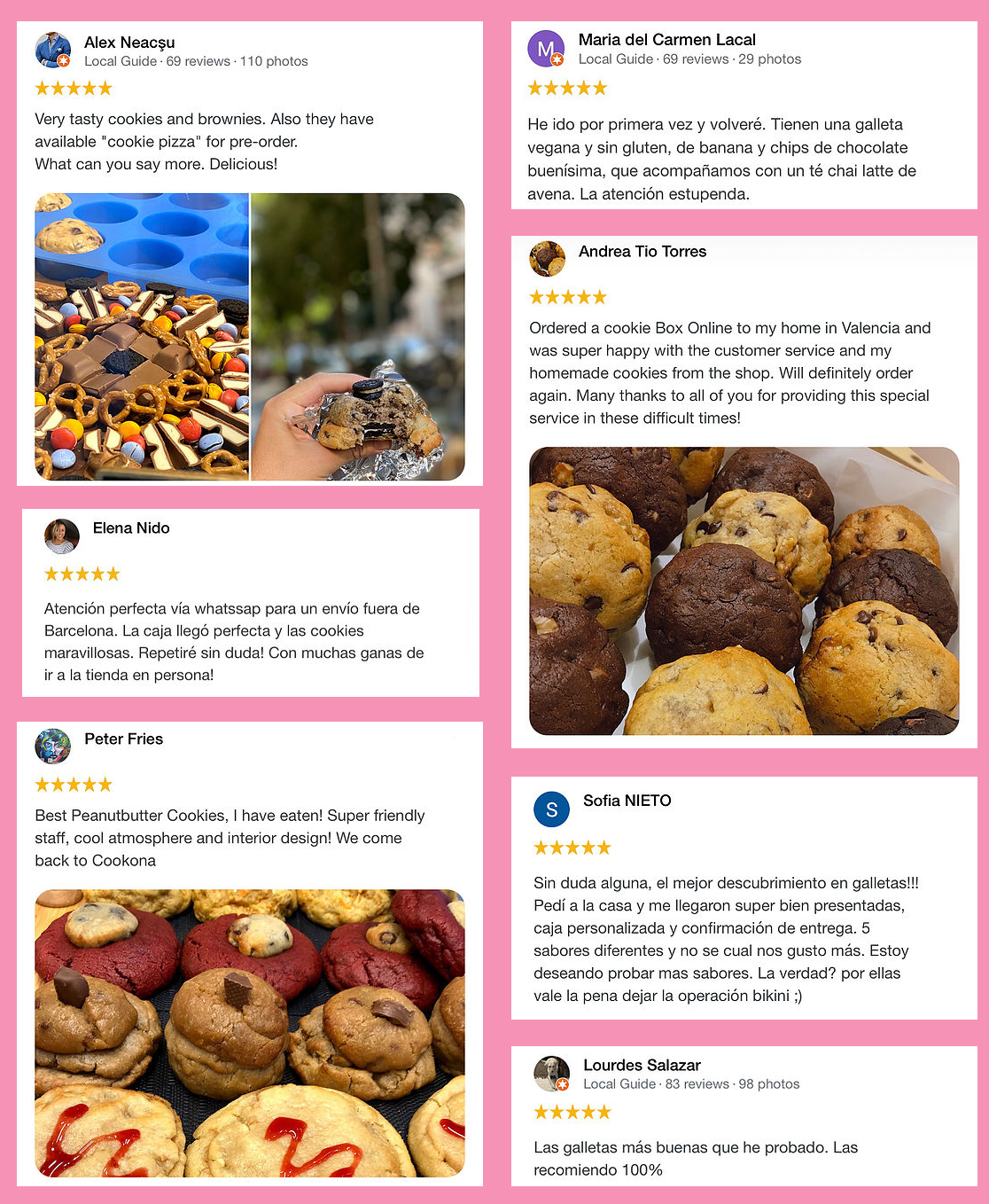 COOKONA is a dessert shop specializing in really big and filling cookies, ice cream and artisan drinks. Inspired by the sweet things I've enjoyed on trips to New York and around the world, our menu puts a German twist on American classics without holding back on the butter and sweet. Everything is baked, mixed and made daily, in our store in Barcelona.
